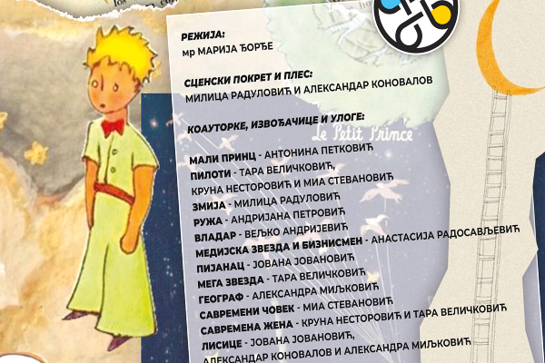 U petak, 21. februara, u sali Osnovne muzičke škole „Dušan Skovran“, mlađa i srednja grupa Škole glume „Ćuprija“ izvešće predstavu „Mali princ- sa planete na planetu“.