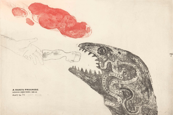 Foto: Dejvid Hokni „Odbačeno“ iz „Razvratnikovog napretka“ 1961–1963 Brokopis, akvatinta, 49.53 x 62.23 cm Kolekcija Britanskog saveta © David Hockney