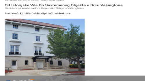 PREDAVANjE DRUŠTVA ARHITEKATA ZRENjANIN „OD ISTORIJSKE VILE DO SAVREMENOG OBJEKTA U SRCU VAŠINGTONA“ Kulturni centar Zrenjanina Četvrtak, 10. april – 19 časova Ljubiša Dabić dipl. ing. arhitekture, na poziv Društva arhitekata Zrenjanina i Kulturnog centra u četvrtak, 10. aprila u Maloj sali Kulturnog centra sa početkom u 19 časova održaće strukovno predavanje pod nazivom „Od istorijske vile do savremenog objekta u srcu Vašingtona“ i u svojstvu projektanta i izvođača, predstaviti projekat restauracije i renoviranja istorijskog objekta zvanične rezidencije Ambasadora Republike Srbije u Vašingtonu (SAD). Izvor: KCZR